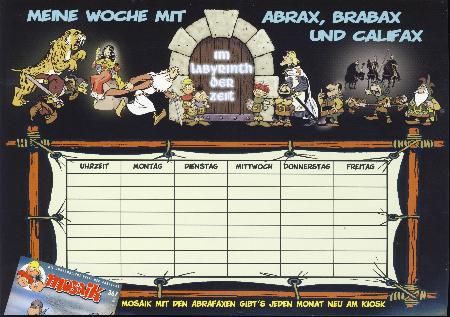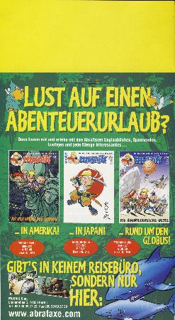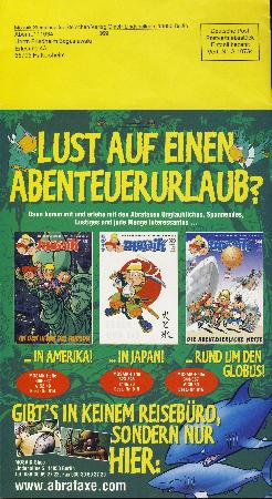 mit rückseitiger Werbung für „Die Abrafaxe unter schwarzer